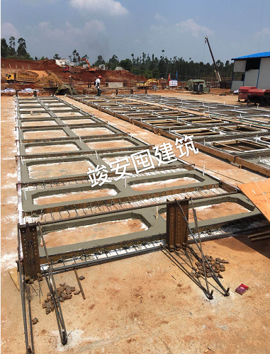 服務熱線: 四川竣安囤建筑工程有限公司為專業(yè)預應力拱板施工公司,公司注冊資本為1000萬元。公司經營范圍:住宅房屋建筑、房屋建筑工程、市政公用工程、土石方工程服務、防水防腐保溫工程、鋼結構工程、橋梁工程、公路交通工程、地基基礎工程、園林綠化工程施工、水利水電工程、建筑裝飾工程、建筑勞務分包、砼結構構件制造、預應力工程專業(yè)承包。 公司現有專業(yè)技術人員22人,均從事預應力拱板施工超過10余年,技術力量強大,現場施工經驗豐富,能適應各種預應力拱板施工,專業(yè)技術工人500余人,專業(yè)隔板施工人員60人,木工120人,鋼筋工90人,混凝土工150人,專業(yè)電工、焊工20余人,專業(yè)張拉機手35人,專業(yè)拱板高空滑移就位人員50人,能進行10余個工地同時施工。 公司先后承建了中儲糧荊門直屬庫掇刀分庫、中儲糧監(jiān)利直屬庫、 湖北省荊州川店儲備庫、湖北省咸寧儲備庫、湖南岳陽儲備庫、廣安火車站中直糧庫、湖北江陵儲備庫、湖北孝感儲備庫、廣安武勝國家糧庫、重慶秀山國家糧庫、云南玉溪紅塔區(qū)糧庫、云南西山區(qū)國家糧庫、云南曲靖陸良國家糧庫、云南江川糧庫、云南曲靖市糧庫、四川瀘縣嘉明糧庫、四川邛崍固驛種子庫、四川遂寧安居中直庫、云南石林糧倉、云南楚雄牟定糧庫、云南綏江縣糧庫、四川廣安儲備庫、云南盈江拆舊建新糧庫、貴州畢業(yè)糧庫、云南嵩明糧庫、重慶南川儲備庫、云南石林糧庫、遂寧直屬庫安居分庫、云南祿勸糧庫、綿陽三臺直屬庫、重慶渝西南糧庫、重慶墊江儲備庫、重慶永川儲備庫、重慶梁平儲備庫、重慶忠縣儲備庫、重慶江津儲備庫、重慶黔江儲備庫、黔江軍糧站、成都新都儲備庫、四川彭州儲備庫、四川蒙陽儲備庫、四川什邡儲備庫、四川遂寧儲備庫、廣安回龍儲備庫、達州開江物流園儲備庫、大理巍山儲備庫、大理云龍儲備庫、大理祥云儲備庫、云南威信儲備庫、昆明祿勸儲備庫、普洱景東儲備庫、臨滄雙江儲備庫、昭通大關儲備庫、楚雄南華儲備庫,庫房跨度24米。 公司專業(yè)承接預應力拱板板制作,采用空中預制施工工藝,僅需在室內地面進行拱板隔板預制。重點在高空利用原有部分圈梁進行加固改造形成張拉臺座,完成下弦板預應力張拉,一次性完成拱板屋架混凝土澆筑,待拱板屋架整體砼達到設計強度時,實施放張,用千斤頂頂起拱板放置專用滑輪車上,運用卷揚機在水平圈梁上滑移至設計安裝位置。本工藝不需搭設滿堂腳手架(僅局部搭設),不需大型機械吊裝,不需大型堆碼場地,比地下預制成本低,安全可靠。比滿堂腳手架耗材少,是一種經濟實用型工藝。